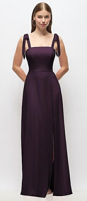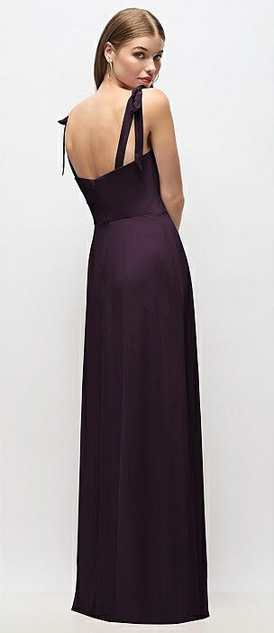 Tie-Shoulder Chiffon Maxi Dress with Front Slit in aubergine