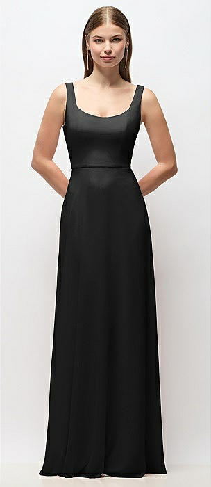 Scoop-Neck Tank Bodice Maxi Dress with Full Skirt in black