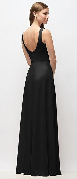Scoop Neck Tank Strap Chiffon Maxi Dress in black