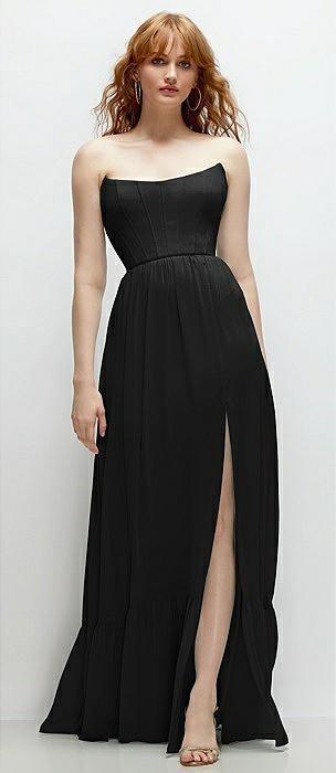 Strapless Cat-Eye Corset Maxi Dress with Ruffle Hem A-Line Skirt in black
