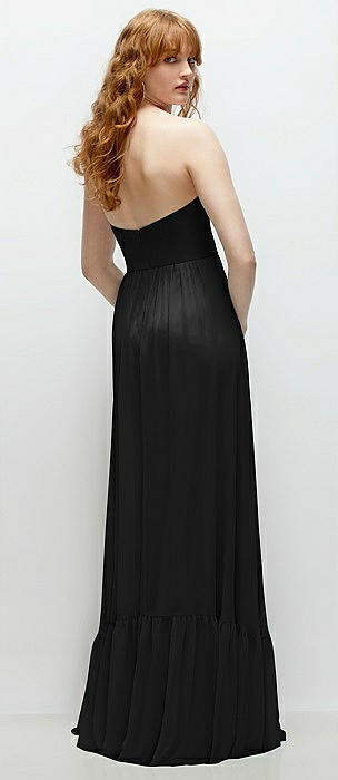 Strapless Chiffon Maxi Dress with Tiered Micro Ruffle Full Skirt in black