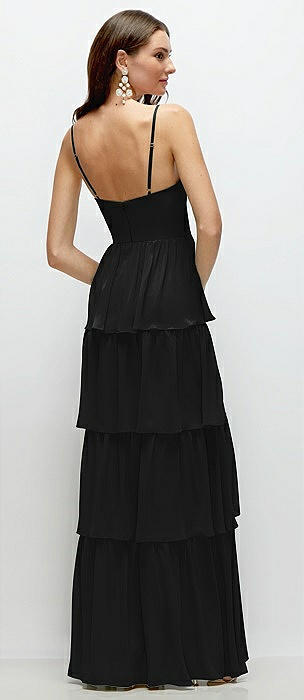 Bustier-Style Chiffon Tiered Ruffle Maxi Dress with Adjustable Straps in black