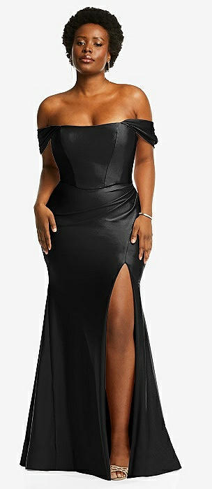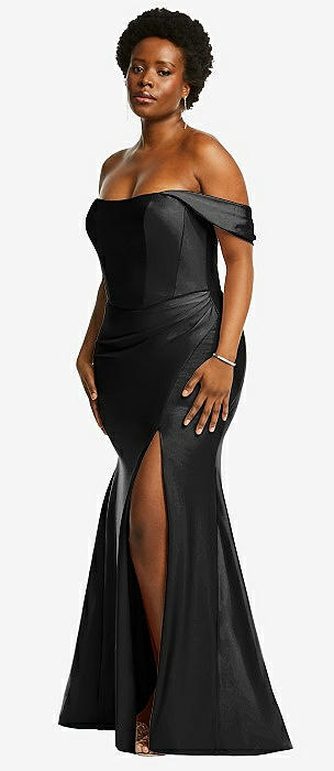 Off-the-Shoulder Corset Stretch Satin Mermaid Dress with Slight Train in black