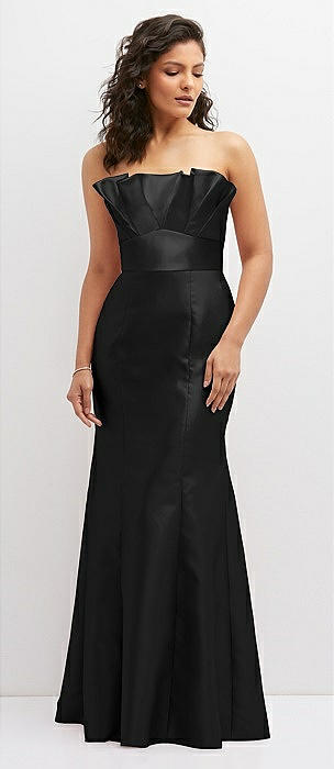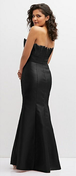 Strapless A-line Satin Gown with Modern Bow Detail in black