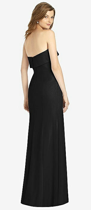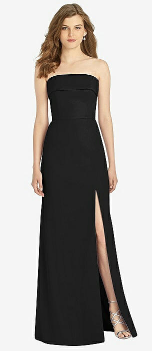 Strapless Pleated Faux Wrap Trumpet Gown with Front Slit in black