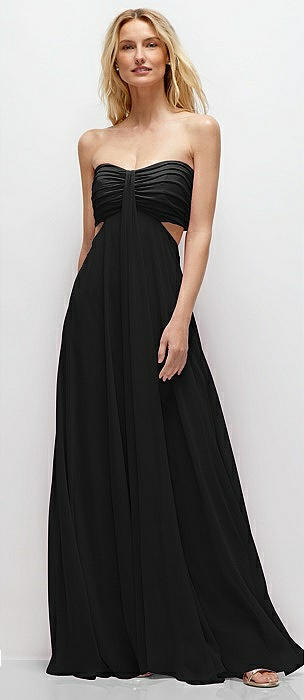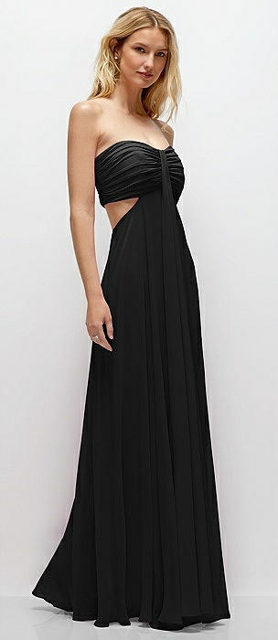 Strapless Empire Waist Cutout Maxi Dress with Covered Button Detail in black