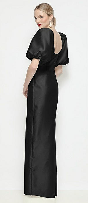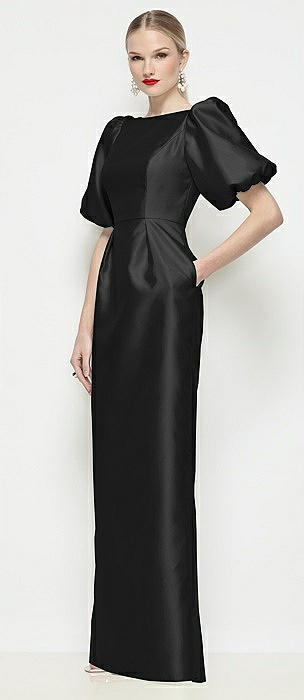 Bateau Neck Satin Column Maxi Dress with Puff Sleeves in black