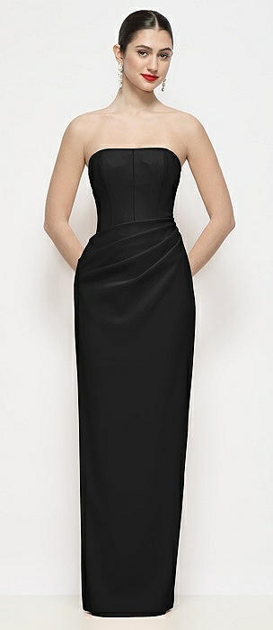 Strapless Asymmertical Drop Waist Corset Maxi Dress with Column Skirt in black