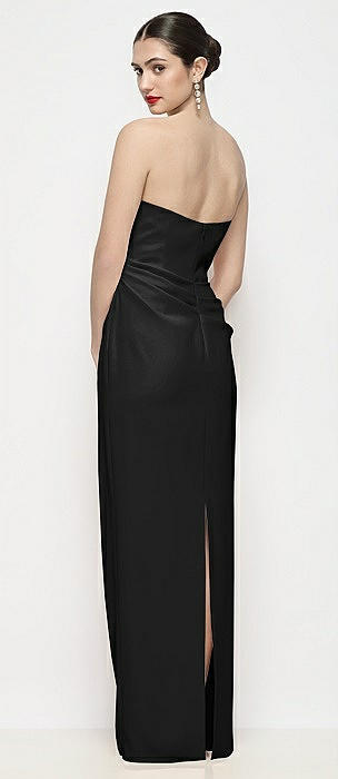 Strapless Shirred Chiffon Trapeze Maxi Dress in black