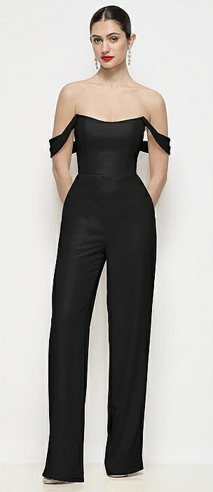 Off-the-Shoulder Basque Neck Crepe Wide Leg Formal Jumpsuit in black