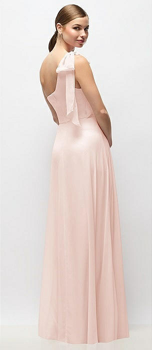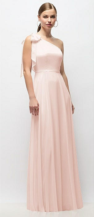 Bow One-Shoulder Full A-Line Satin Maxi Dress in blush