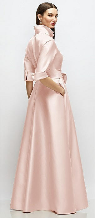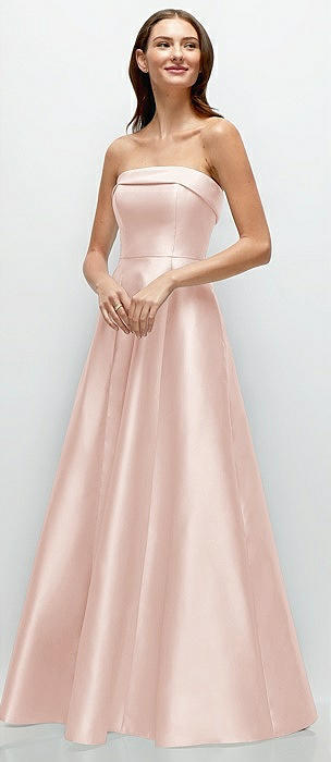 Strapless Bias Cuff Bodice Satin Gown with Pockets in blush