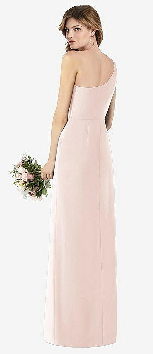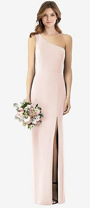 One-Shoulder Crepe Trumpet Gown with Front Slit in blush