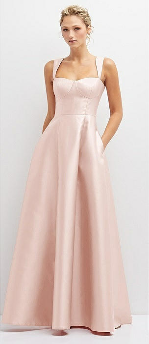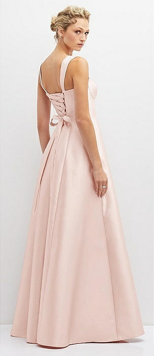 Lace-Up Back Bustier Satin Dress with Full Skirt and Pockets in blush