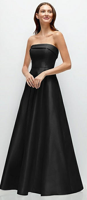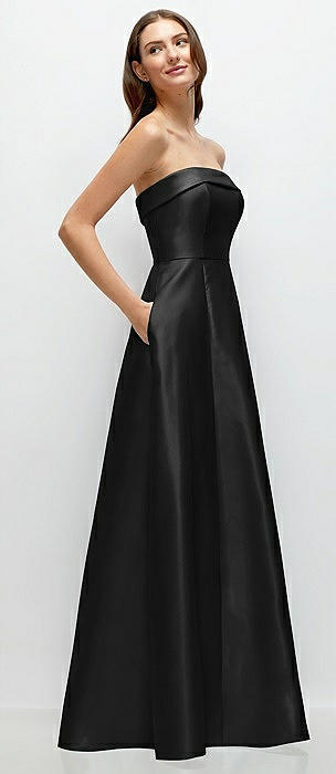 Strapless Bias Cuff Bodice Satin Gown with Pockets in black