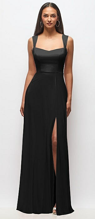 Contoured Wide Strap Sweetheart Maxi Dress in black