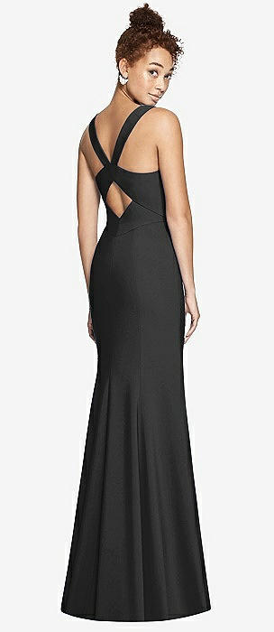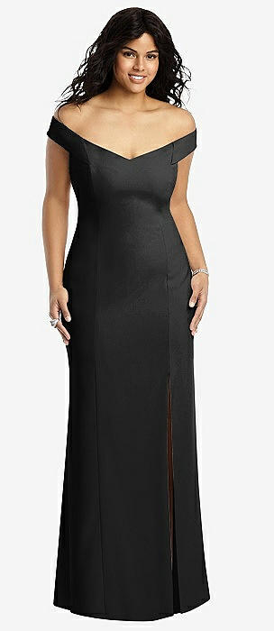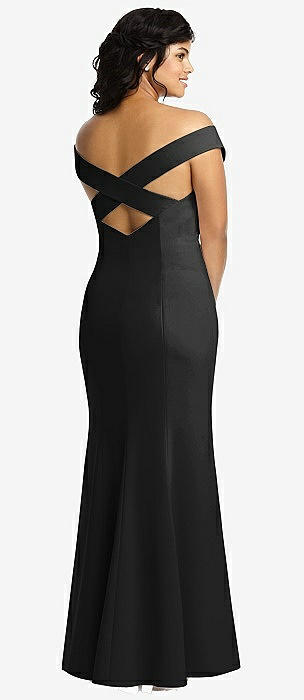Off-the-Shoulder Criss Cross Back Trumpet Gown in black