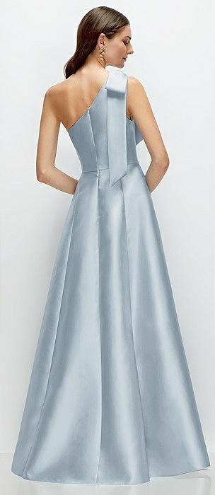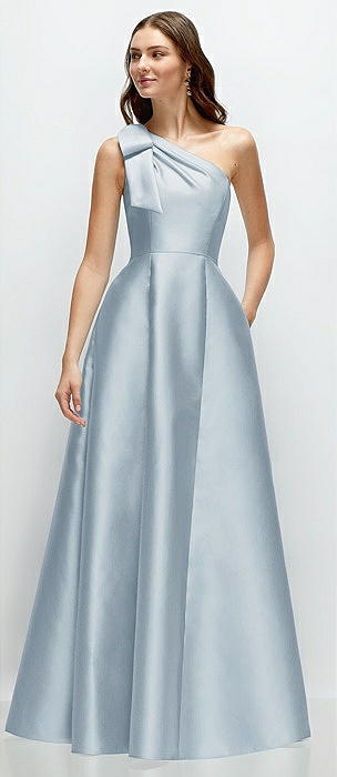 Bow One-Shoulder Full A-Line Satin Maxi Dress in mist