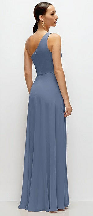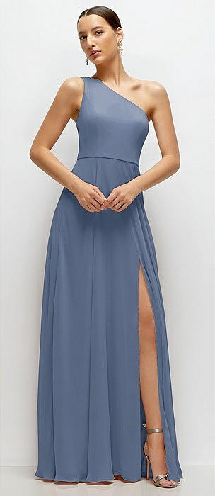 Chiffon One-Shoulder Maxi Dress with Circle Skirt in larkspur blue