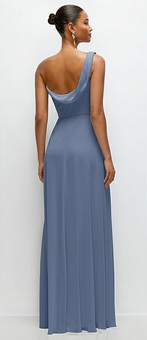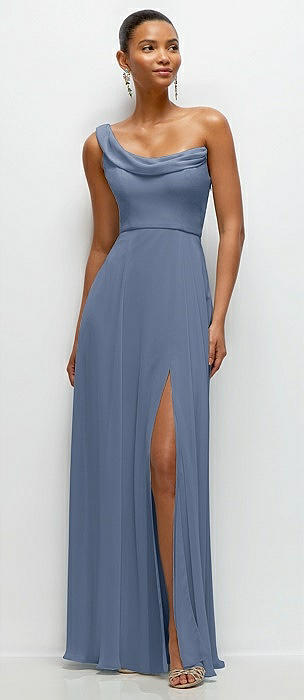 Chiffon One-Shoulder Maxi Dress with Draped Cowl Neckline in larkspur blue