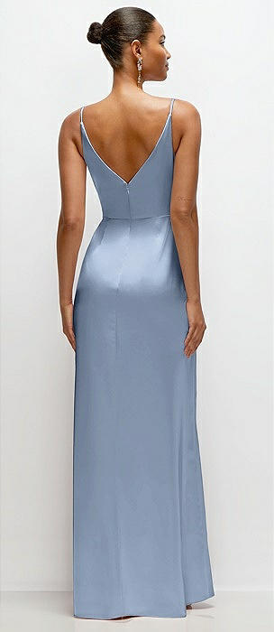 Cowl Neck Satin Maxi Dress with Adjustable Spaghetti Straps in cloudy