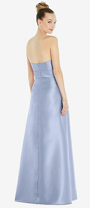 Basque-Neck Strapless Satin Gown with Mini Sash in sky blue