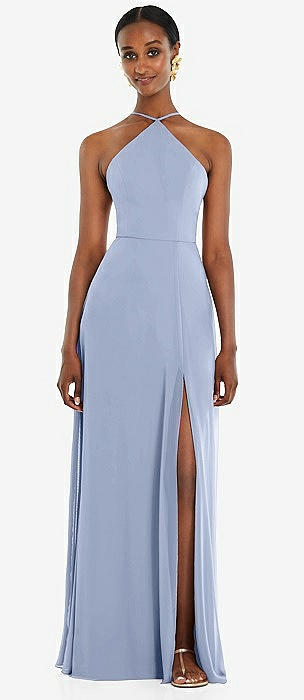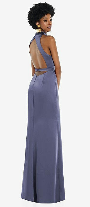 Draped Twist Halter Tie-Back Trumpet Gown in french blue