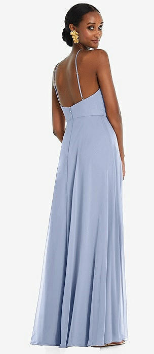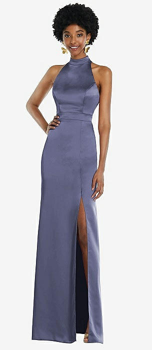 High Neck Backless Maxi Dress with Slim Belt in french blue
