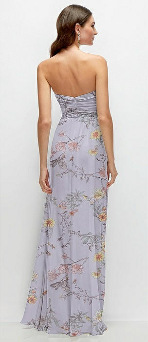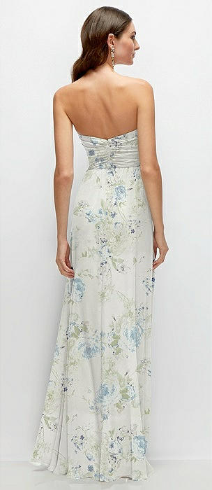 Strapless Pleated Surplice Chiffon Maxi Dress with A-Line Skirt in butterfly botanica silver dove