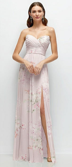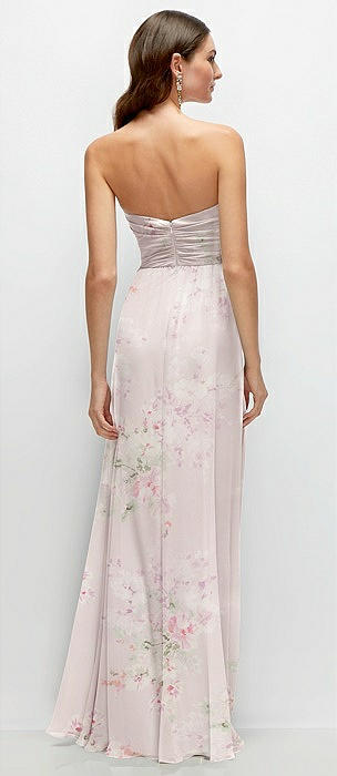 Strapless Pleated Surplice Chiffon Maxi Dress with A-Line Skirt in blush garden