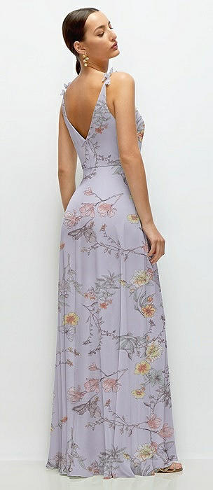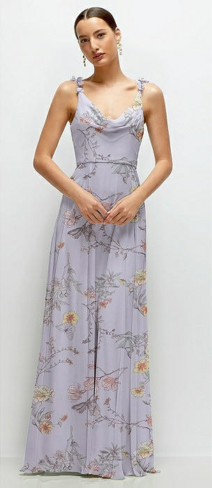 Cowl Neck Chiffon Maxi Dress with Hand-Worked Petal Straps in butterfly botanica silver dove