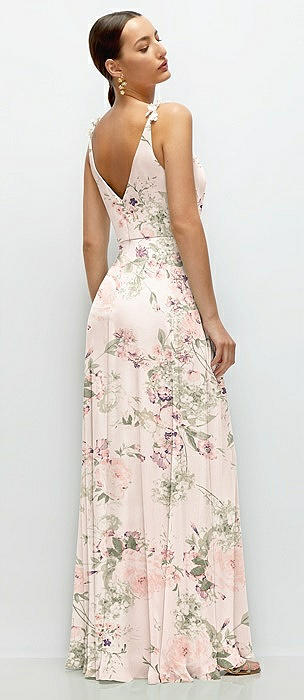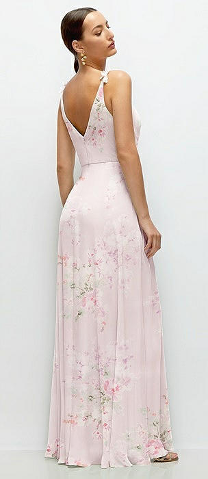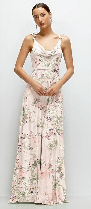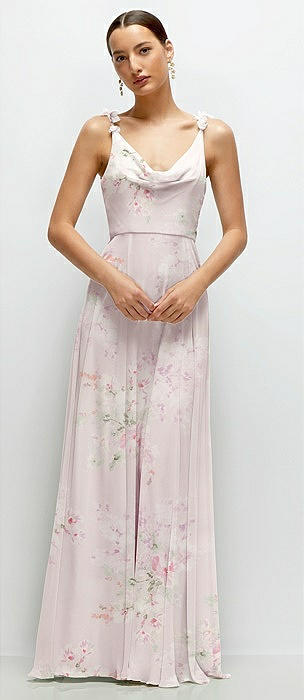 Cowl Neck Chiffon Maxi Dress with Hand-Worked Petal Straps in blush garden