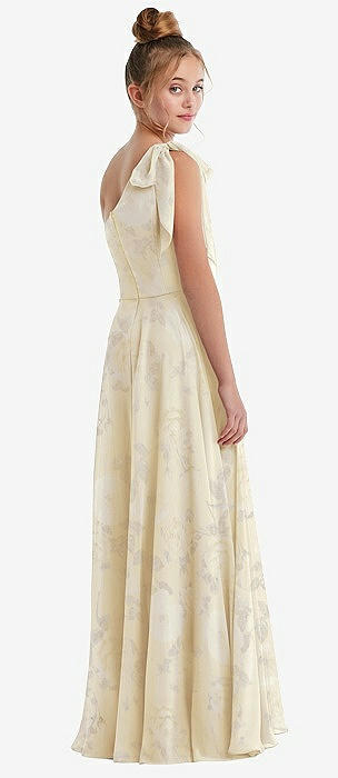 One-Shoulder Scarf Bow Chiffon Junior Bridesmaid Dress in butter yellow floral