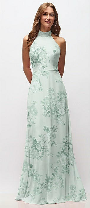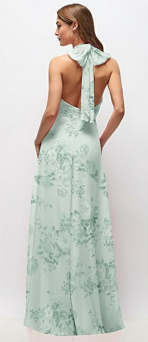 High Neck Halter Backless Maxi Dress in vintage primrose sage