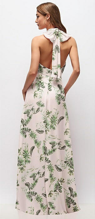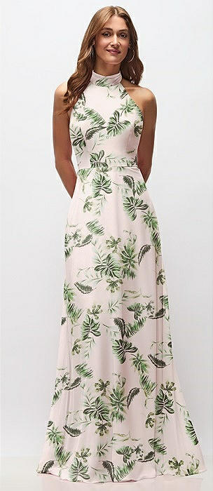 High Neck Halter Backless Maxi Dress in coquette floral print