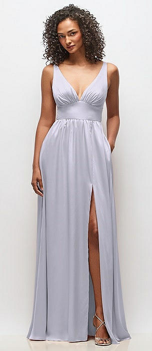 Deep V-Neck Shirred Skirt Maxi Dress with Convertible Straps in silver dove