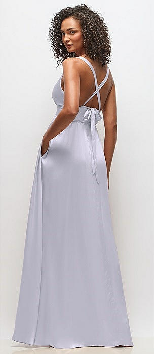 Draped Satin Grecian Column Gown with Convertible Straps in silver dove