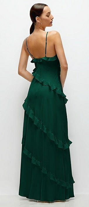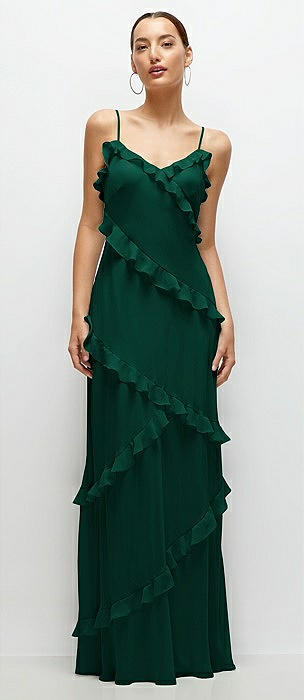 Asymmetrical Ruffle Chiffon Bias Slip Maxi Dress in hunter green