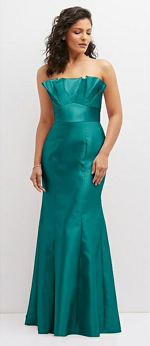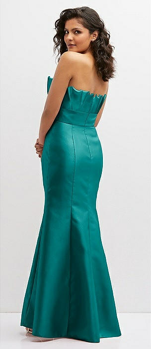 Strapless A-line Satin Gown with Modern Bow Detail in jade