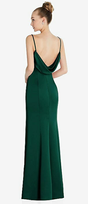 Draped Cowl-Back Princess Line Dress with Front Slit in hunter green