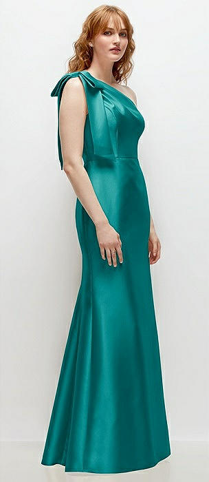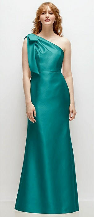 Bow One-Shoulder Satin Trumpet Gown in jade