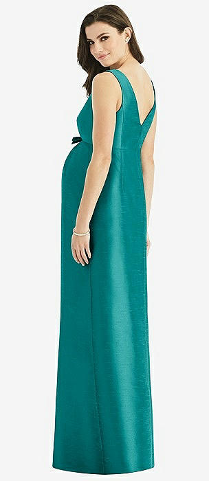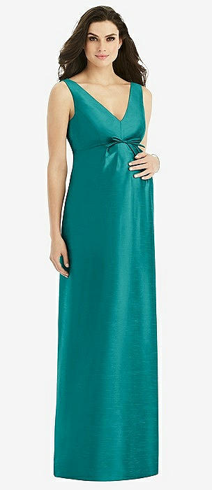 Scoop Neck Satin Column Maxi Dress with Bow at Empire Waist in mojito