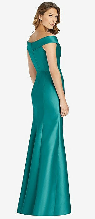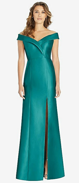 Off-the-Shoulder Cuff Trumpet Gown with Front Slit in jade