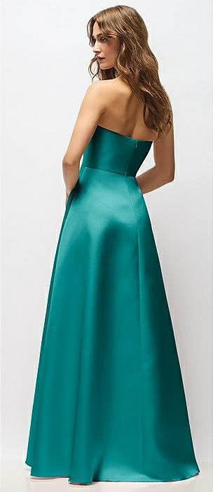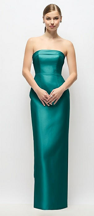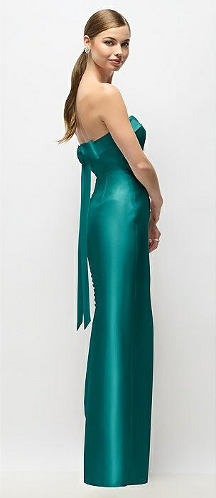 Strapless Cuff Satin Maxi Dress with Column Skirt & Back Bow in jade