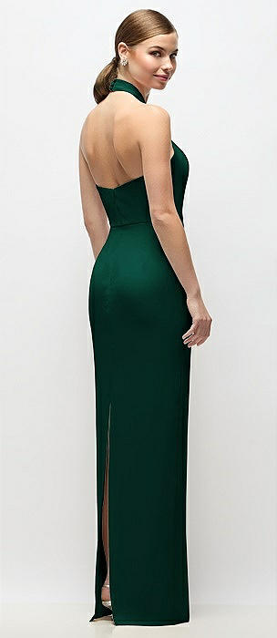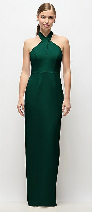 Criss-Cross Halter Open-Back Crepe Column Maxi Dress in hunter green