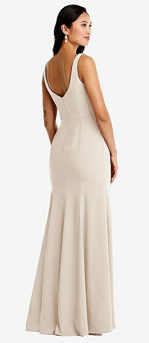 Sleeveless Satin Trumpet Gown with Bow at Open-Back in cameo
