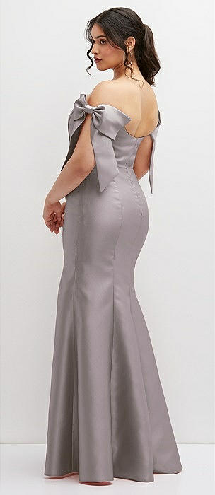 Off-the-Shoulder Bow Satin Corset Dress with Fit and Flare Skirt in cashmere gray