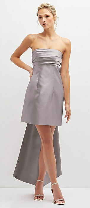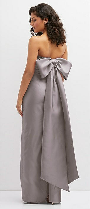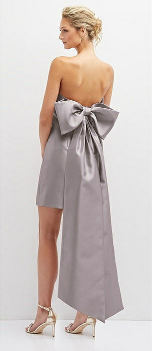Strapless Satin Column Mini Dress with Oversized Bow in cashmere gray