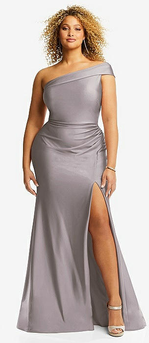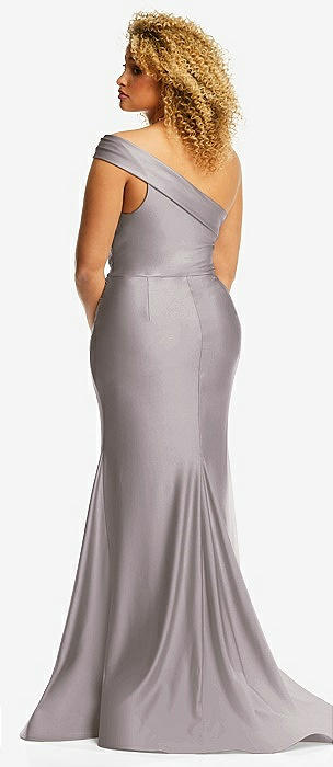 One-Shoulder Asymmetrical Cowl Back Stretch Satin Mermaid Dress in cashmere gray