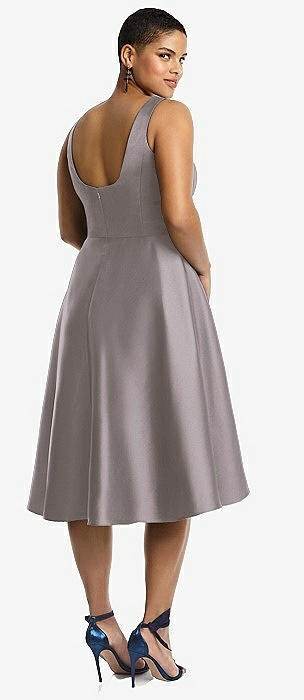 Scoop Neck Satin Column Midi Dress with Bow at Empire Waist in cashmere gray